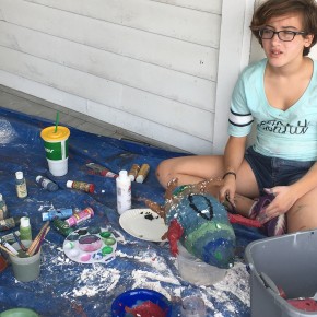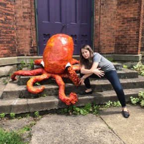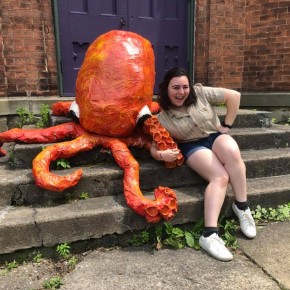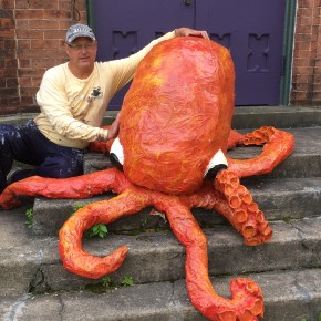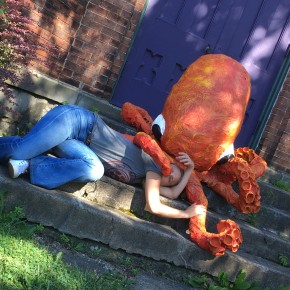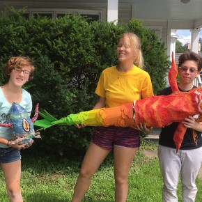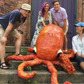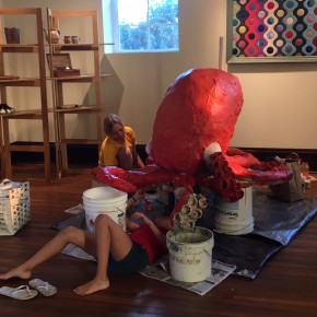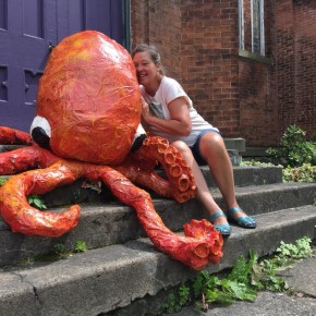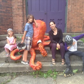 Another workshop Francesca lead was called Eat the Arts Center, a sculpture class where students created monsters to adorn the center’s yard. As a preview of this class, Francesca created “Octobryan”, a colossal project that morphed into yet more public art. Octobryan perched on the center’s front stairs for the entire summer, and sparked much attention from the community. #Octobryan