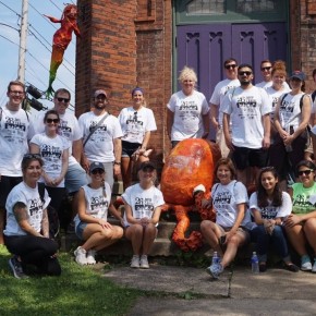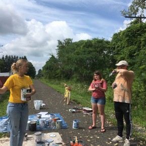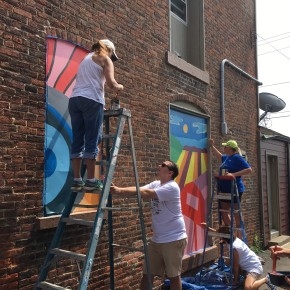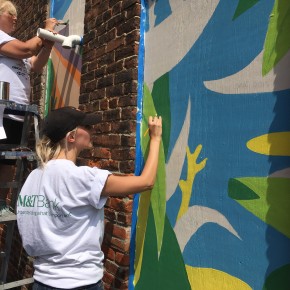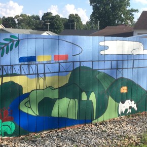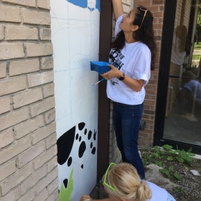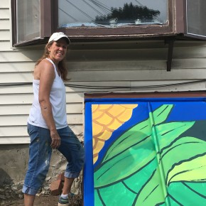 In addition to the many workshops, she oversaw a team of United Way volunteers and they implemented a group of mini-murals (designed by her) as part of United Way’s Day of Caring. These are spread out around the village, are connected by theme, and create interest for the community.