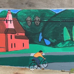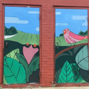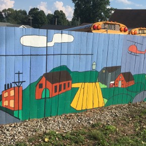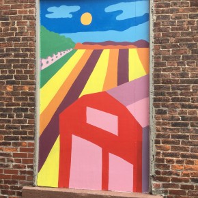 Francesca describes her inspiration as: “The murals here were inspired by Springville’s bustling town scenes, it’s luscious agriculture, Americana influences and of course it’s history. I looked at American folk art, WPA mural artists- such as Diego Rivera, some contemporary mural artists- such as HENSE. I looked at Illustrators: Maira Kalman, Charley Harper, Richard Scarry, and Miroslav Sasek. I was constantly referencing historical images of Springville and Erie County and my own photography of Springville.”