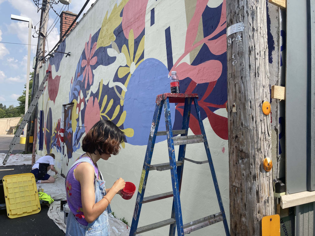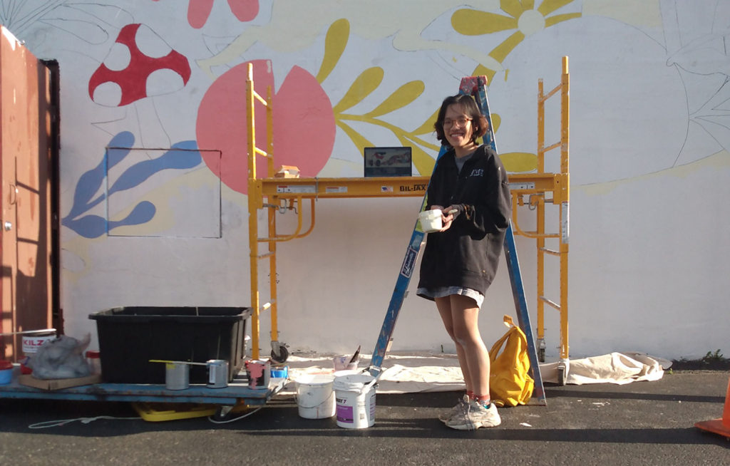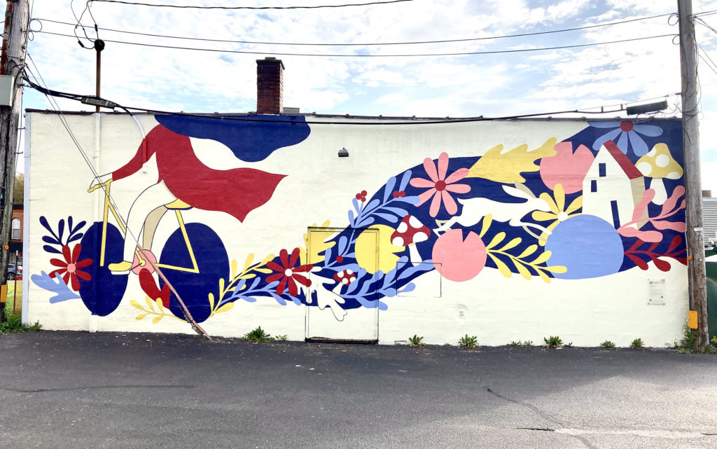 She explains: “It illustrates the curiosities and wonders that can be found on a Sunday morning bike ride in hopes of bringing positive energy and brightness to this little pocket of the community.” The mural also features ao dai (pronounced ao yai), the Vietnamese traditional garment that the cyclist is wearing as a celebration of the artist’s Vietnamese roots.